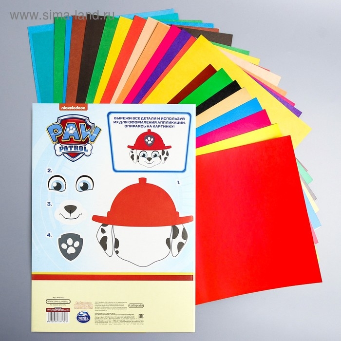 Набор "Щенячий патруль" А4: 10л цветного одностороннего картона + 16л цветной двусторонней бумаги