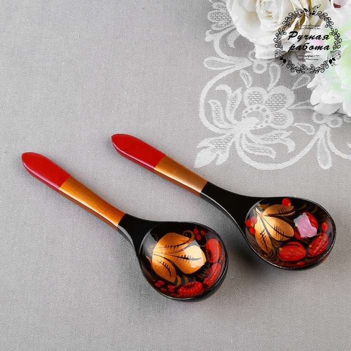 Ложка «Ягодка», салатная, 6×21, хохлома