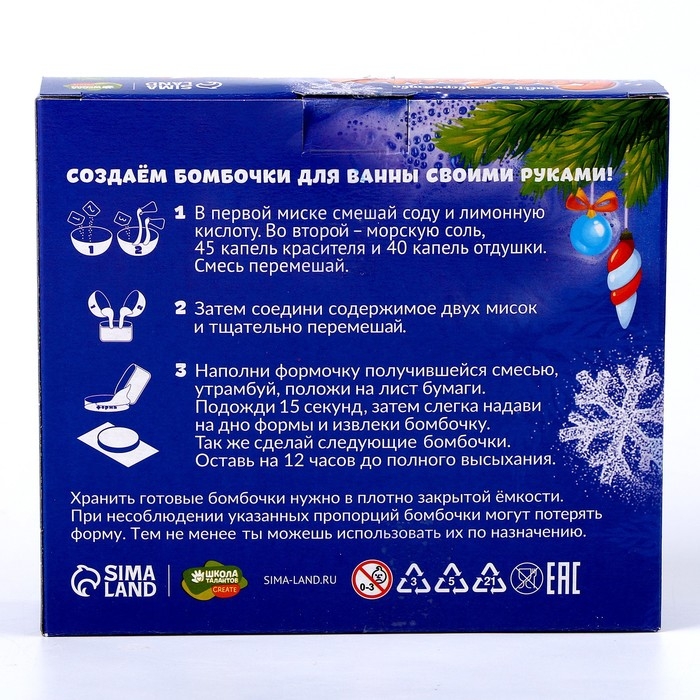 Бомбочки для ванн своими руками на новый год «Волшебная снежинка», новогодний набор для творчества