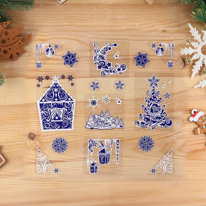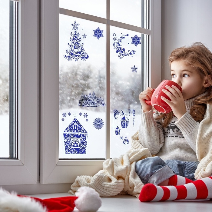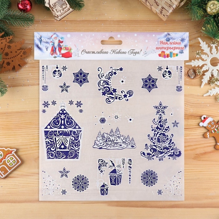 Набор наклеек на окна "Новогодний" синий цвет, ёлочка, дом, 37 х 37 см