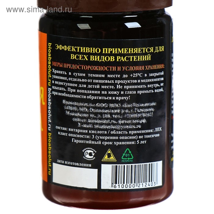 Биостимулятор роста растений "Янтарная кислота", Биоабсолют, 50 г