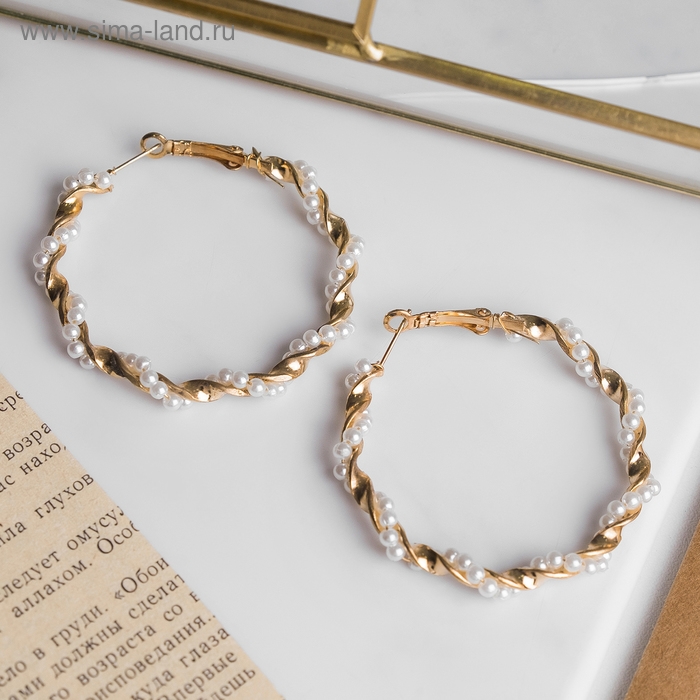 Серьги-кольца «Жемчужная нить» d=5 цвет белый в золоте