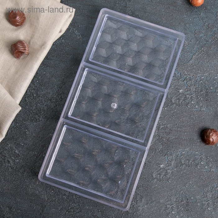 Форма для шоколада KONFINETTA «Плитка шоколада», 33×16,5×2,5 см, 3 ячейки 7,5×11,3 см, цвет прозрачный
