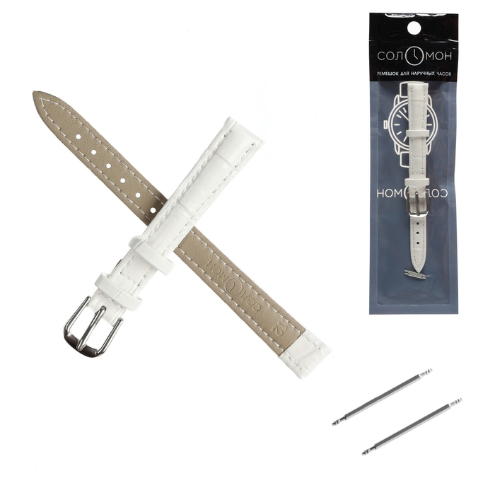 Ремешок для часов "Соломон" 12 мм, натуральная кожа, l-20 см, белый