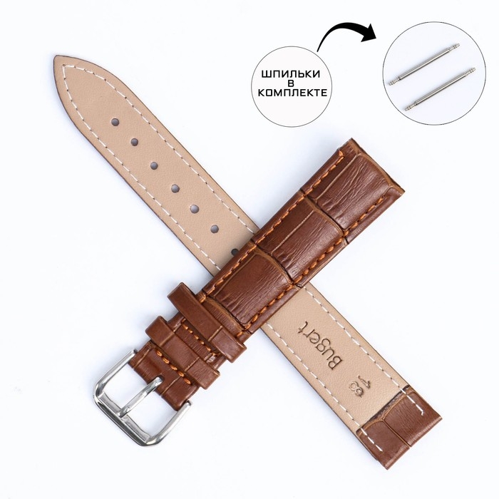 Ремешок для часов "Соломон" 18 мм, натуральная кожа, l-20 см, коричневый