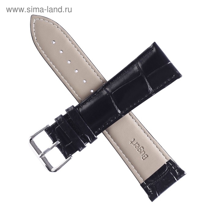 Ремешок для часов "Соломон" 24 мм, натуральная кожа, l-20 см, черный