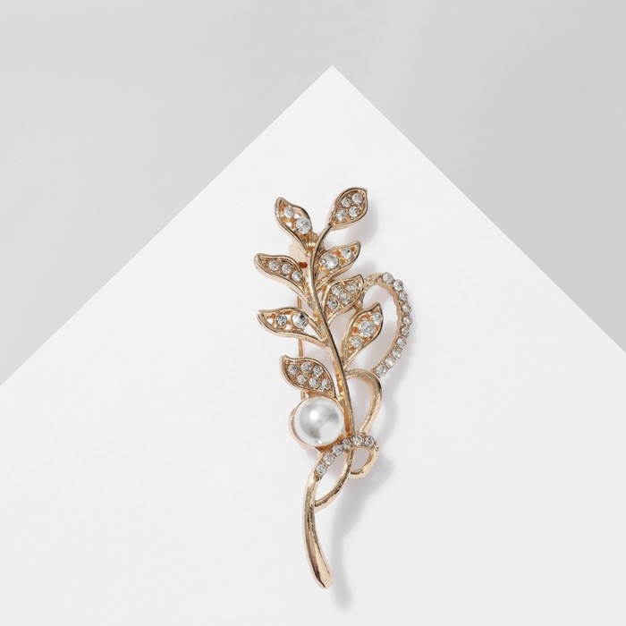 Брошь «Ветвь» с жемчужиной, цвет белый в золоте