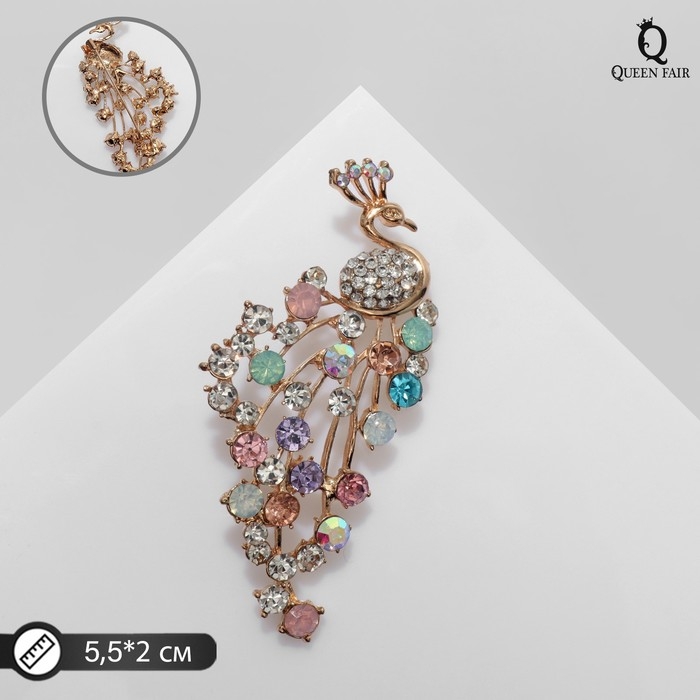 Брошь «Павлин» королевский, цветная в золоте