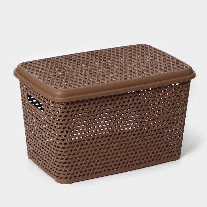 Ящик для хранения с крышкой «Ротанг», 23 л, 45×30×26,5 см, цвет коричневый