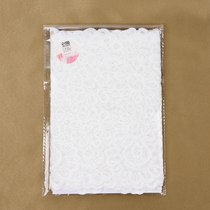 Кружевная эластичная ткань, 190 мм × 2,7 ± 0,5 м, цвет молочный