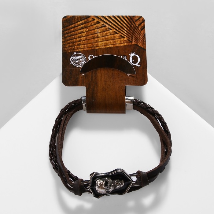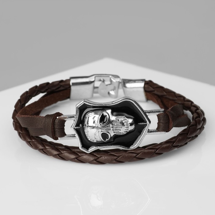 Браслет мужской «Гордон» череп, цвет коричневый с серебром, 21,5 см