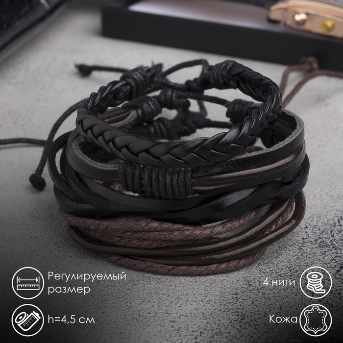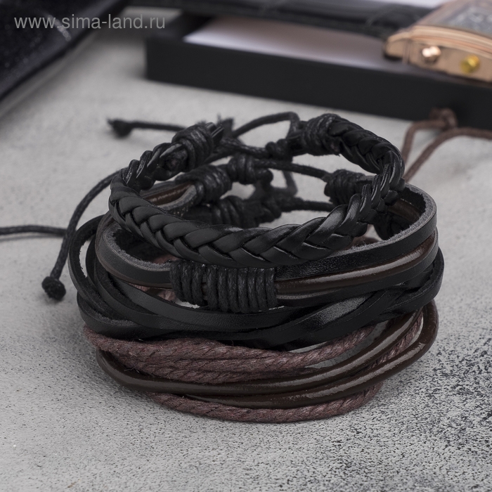 Браслет кожа «Клеть», цвет чёрно-коричневый, d=7,5 см
