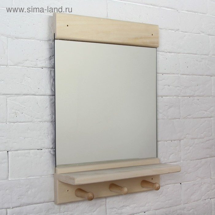 Зеркало "Резное Лесенка" с полкой 3 крючка, 75×40 см