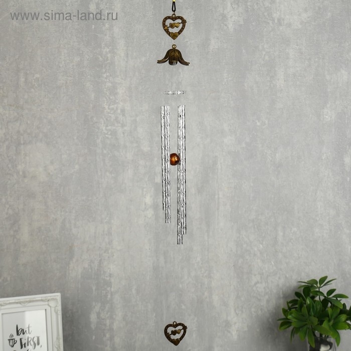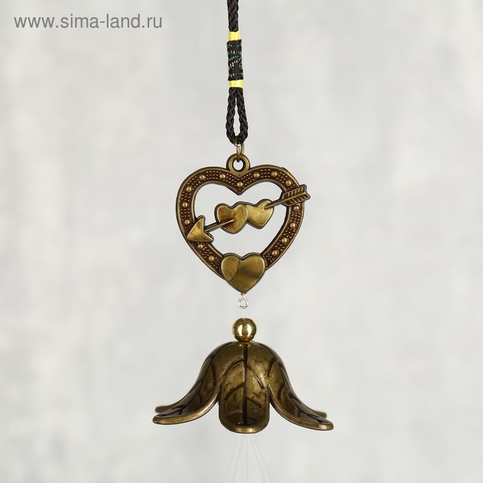 Музыка ветра металл "Двойное сердце со стрелой" 4 трубочки 56 см