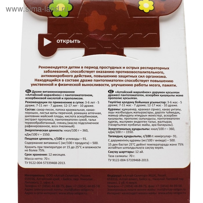 Драже «Алтайский маралёнок» с прополисом рекомендуется в период простудных и острых респираторных заболеваний.
