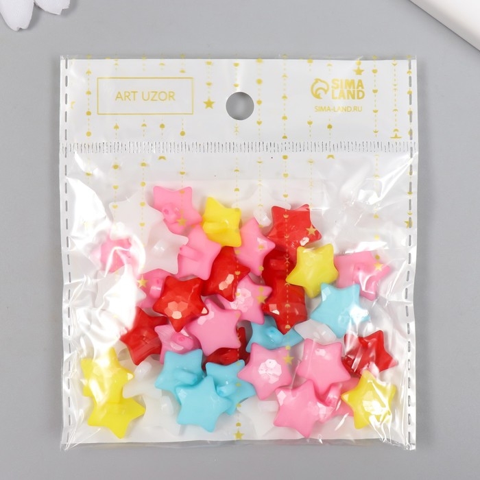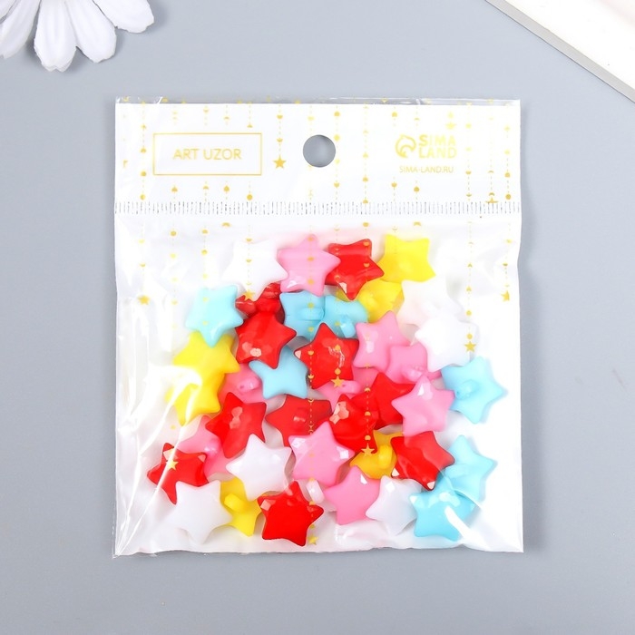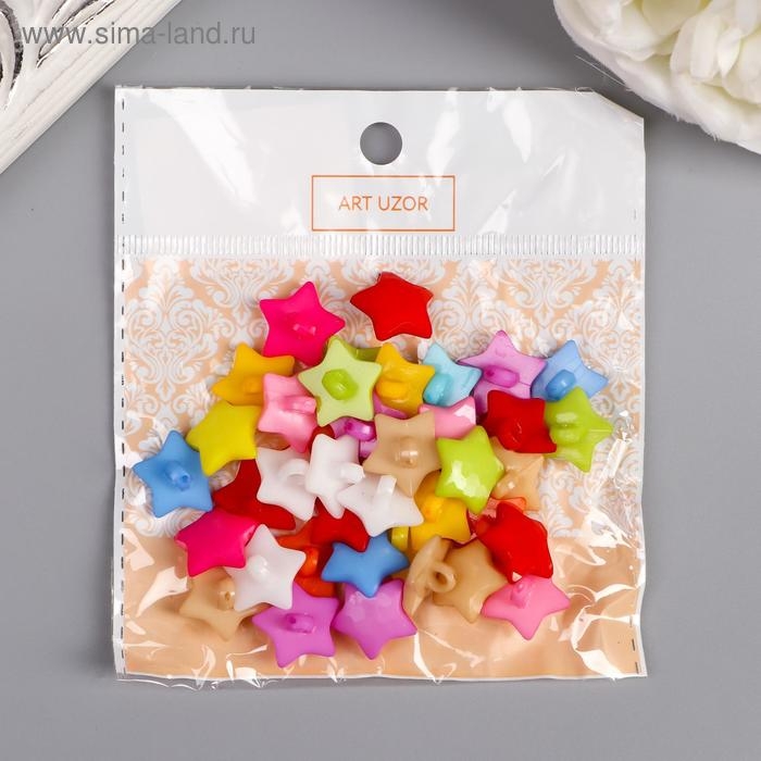 Пуговицы пластик для творчества на ножке "Цветные звёздочки" набор 40 шт 1,5х1,5 см
