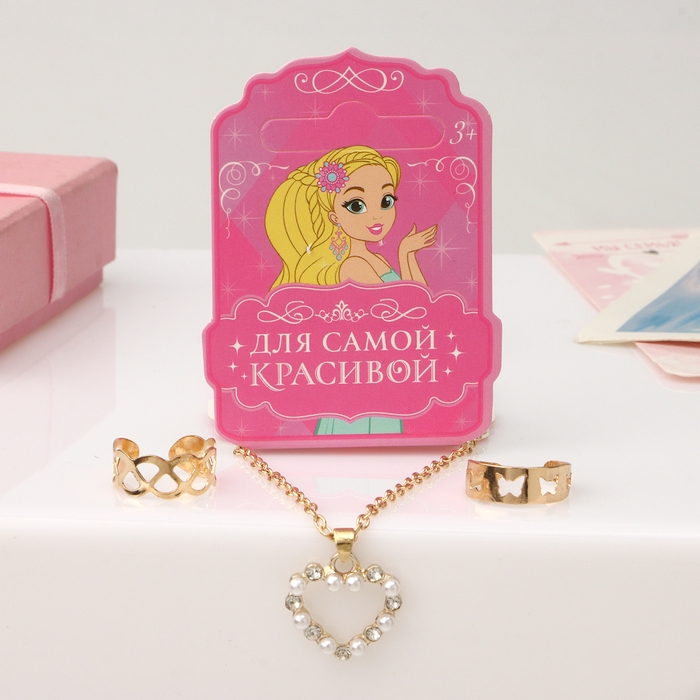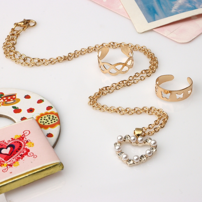Набор «Выбражулька» 3 предмета: кулон 40 см, 2 кольца, сердечко, цвет белый в золоте
