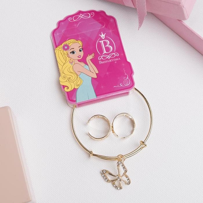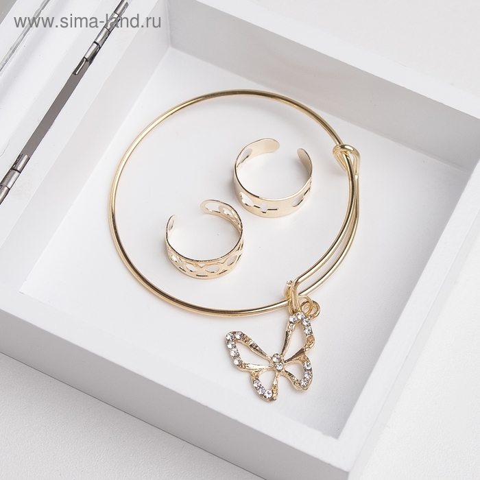 Набор «Выбражулька» 3 предмета: браслет, 2 кольца, бабочка, цвет белый в золоте