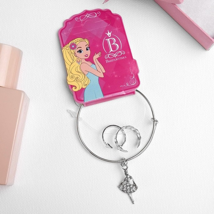 Набор детский «Выбражулька» 3 предмета: браслет, 2 кольца, балерина, цвет белый в серебре