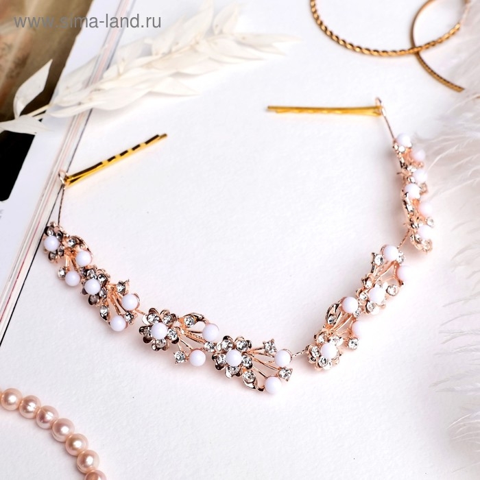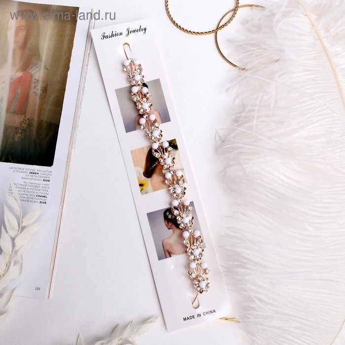 Аксессуар для волос "Моника" (на невидимках) цветы с бусинами, 23 см, золото