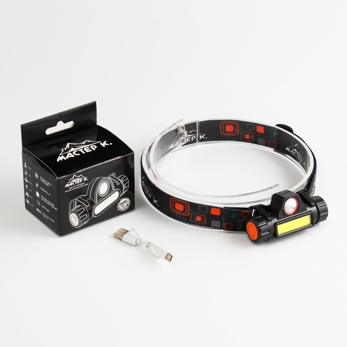 Фонарь налобный аккумуляторный "Мастер К.", 5 Вт, 140 лм, 1200 мАч, 4 режима, USB