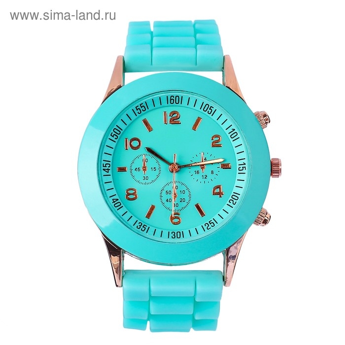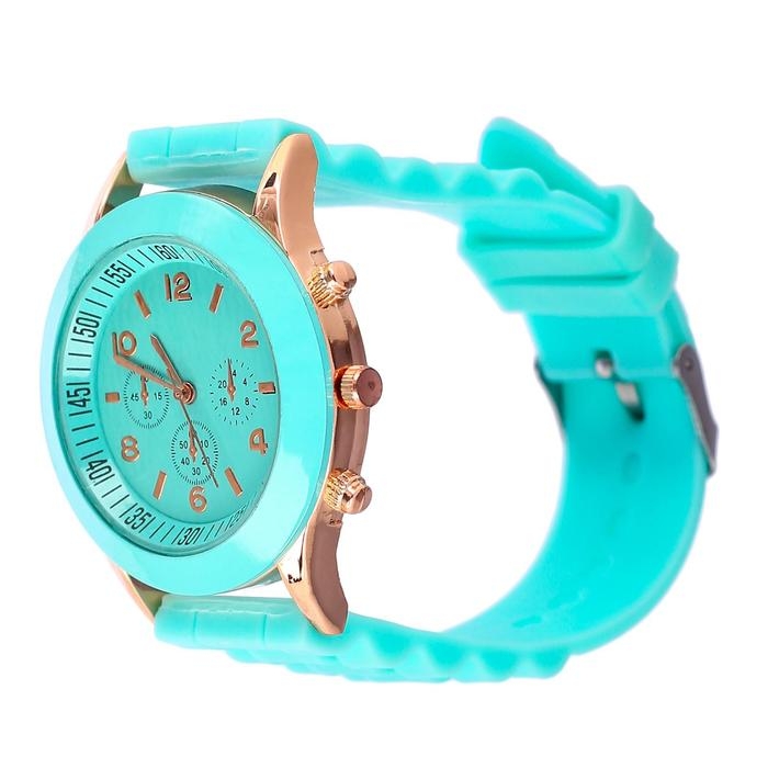 Часы наручные кварцевые женские "Женева", d-3.8 см, ремешок силикон, бирюзовые