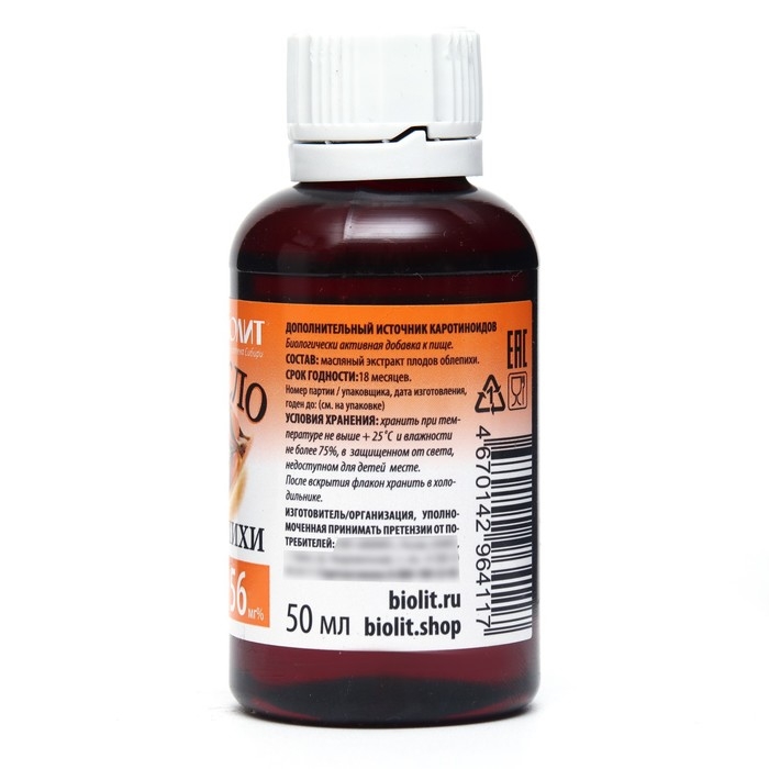 Состав: масляный экстракт плодов облепихи. Содержание каротиноидов (не менее 56 мг%).
