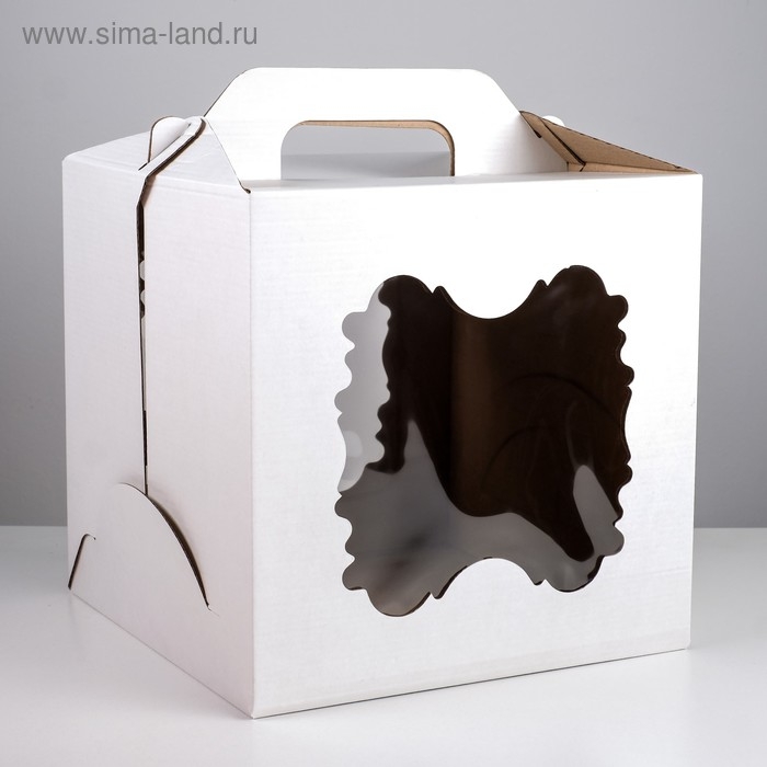 Коробка под торт, белая, с окном, 18 х 18 х 22 см