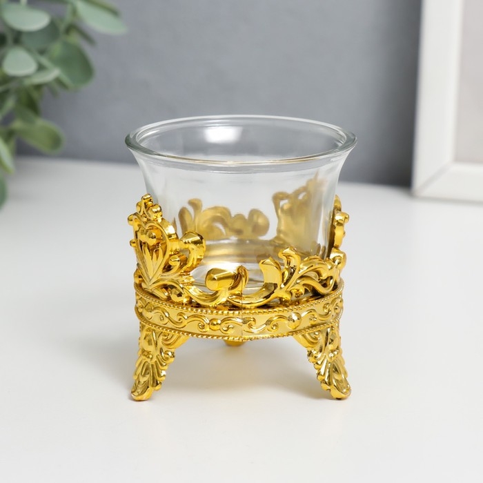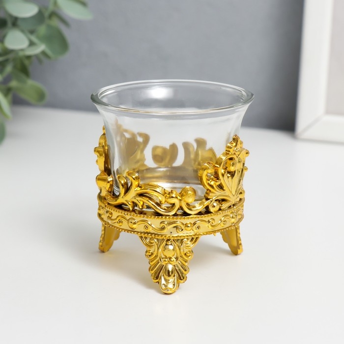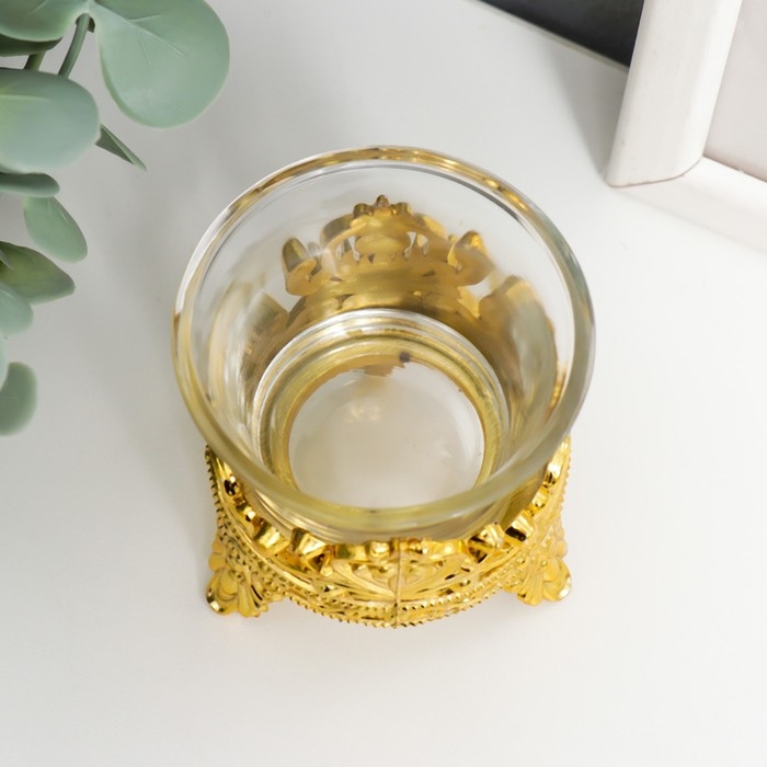 Подсвечник стекло, пластик на 1 свечу "Сердце из листьев сердце" золото 6,5х6х6 см