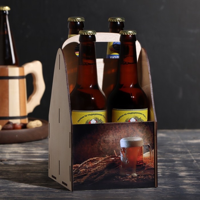 Ящик для пива 19×18×30 см с открывашкой, под 4 бутылки, деревянный