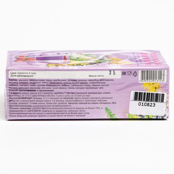Состав: адониса, василистника, горца, дербенника, донника, душицы, зверобоя, золотарника, зюзника, клевера, медуницы, мяты, первоцвета, полыни Божье дерево, синеголовника, чабреца, шалфея трава, аронии, боярышника, рябины, шиповника плоды, березы листья; гречихи цветущие верхушки, ели хвоя, льна семена, пиона, солодки корневища, чага.
