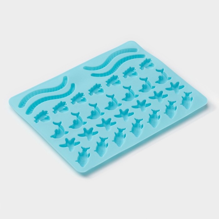 Форма для мармелада Доляна «Морские сладости», силикон, 22,3×17,2 см, 32 ячейки (2,7×2 см), цвет голубой