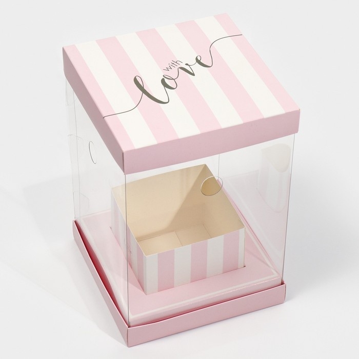 Коробка подарочная для цветов с вазой и PVC окнами складная, упаковка, «With love», 16 х 23 х 16 см