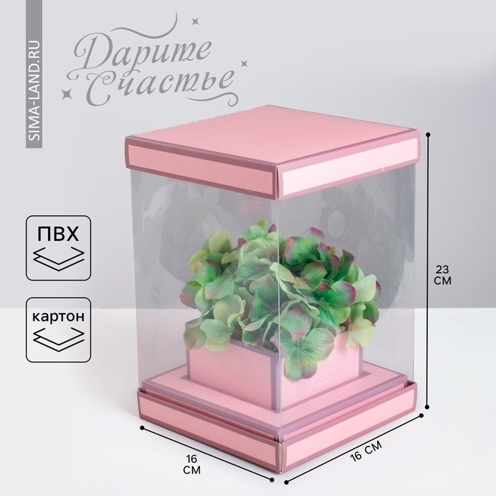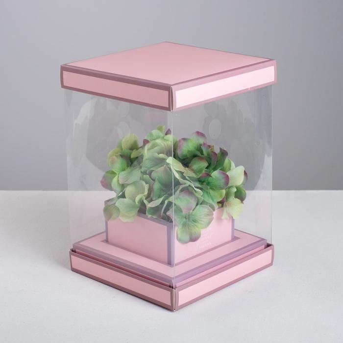 Коробка подарочная для цветов с вазой и PVC окнами складная, упаковка, «Вдохновение», 16 х 23 х 16 см