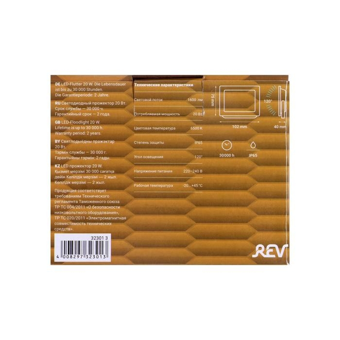 Прожектор светодиодный REV, 20 Вт, 6500 К, 1600 Лм, IP65