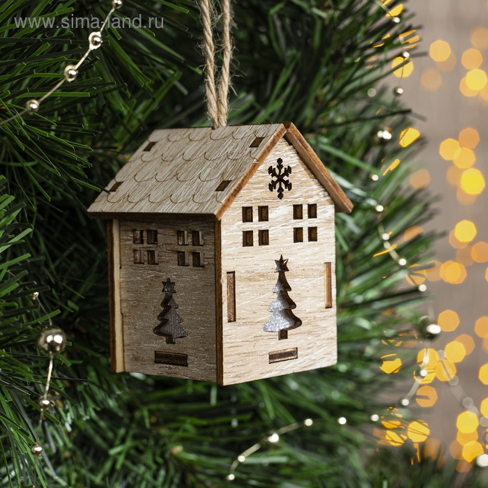 Ёлочная игрушка «Домик с ёлкой», от батареек, свечение тёплое белое