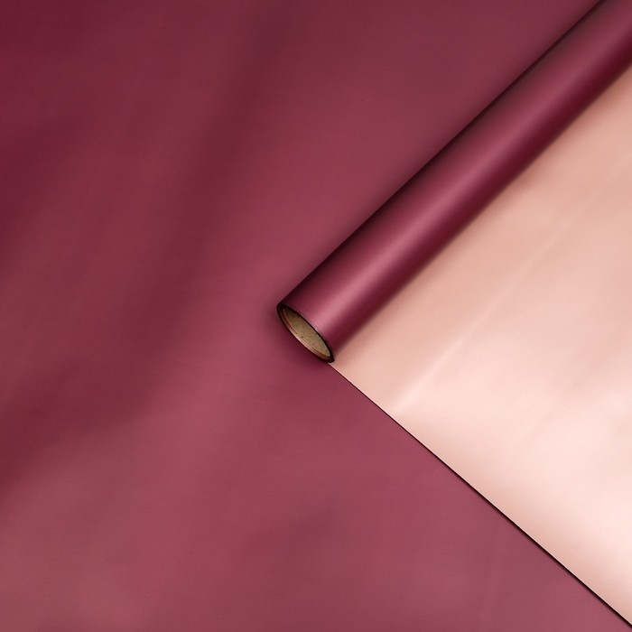 Пленка матовая для цветов, двухсторонняя, "Зефир", бордовый- бежевый, 57 см х 5 м