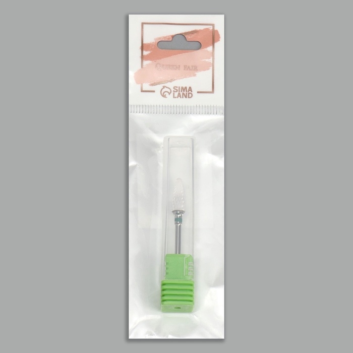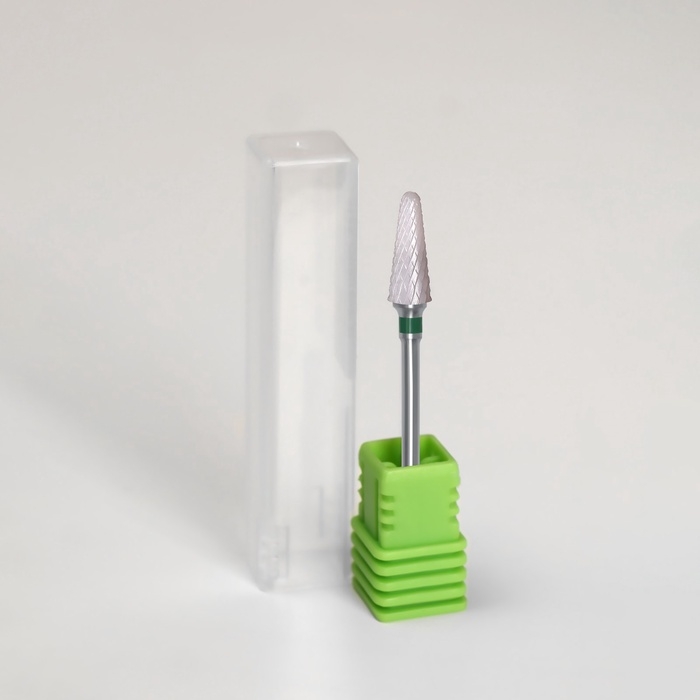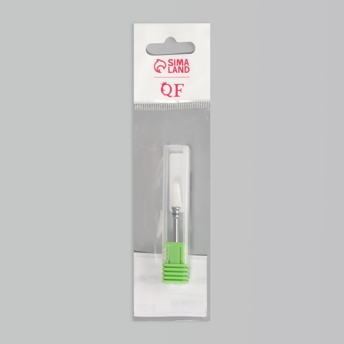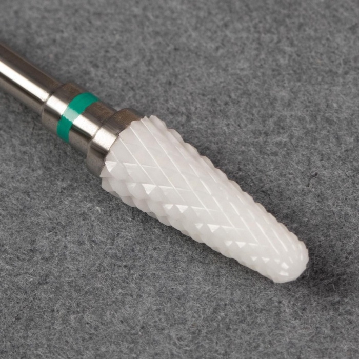 Фреза керамическая для маникюра «Конус скруглённый», крупная нарезка, 6 × 14 мм, в пластиковом футляре, цвет белый