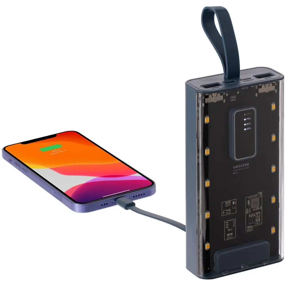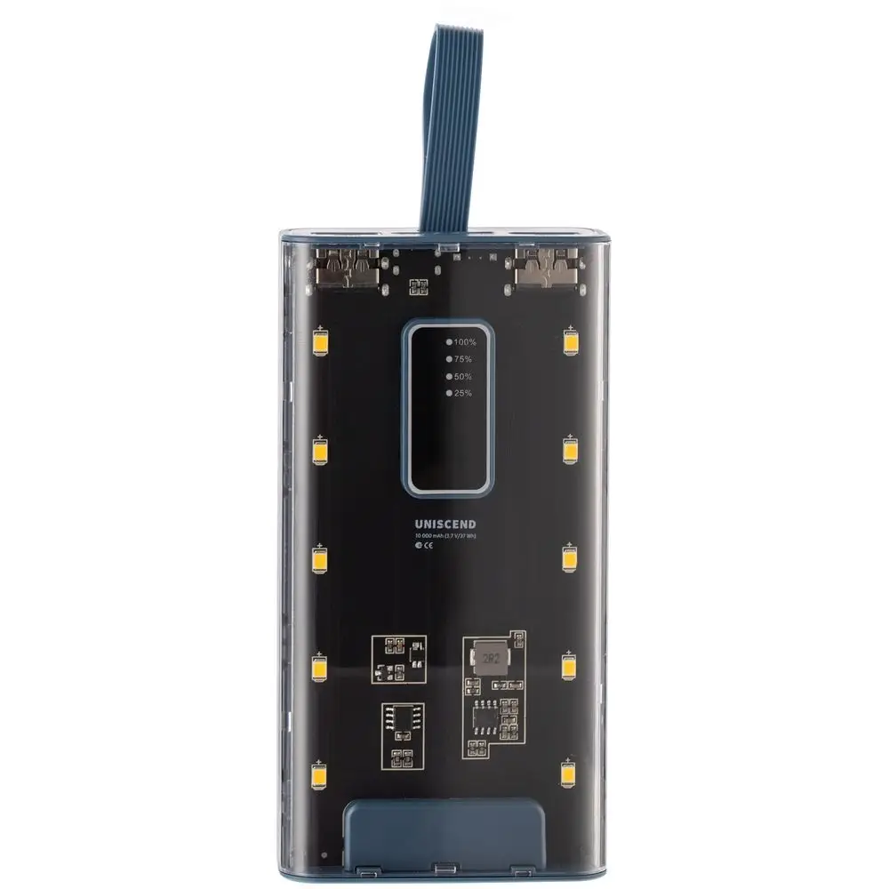 Необычный дизайн коллекции Uniscend Trellis выгодно выделяет новую серию устройств из прозаичного ряда внешних аккумуляторов. Они не поддерживают беспроводную зарядку, зато точно привлекают внимание: под прозрачной панелью хорошо видны электронная начинка и индикатор оставшегося в аккумуляторе заряда, а мягкая подсветка светодиодами теплого оттенка логичным образом дополняет технологичный внешний вид.