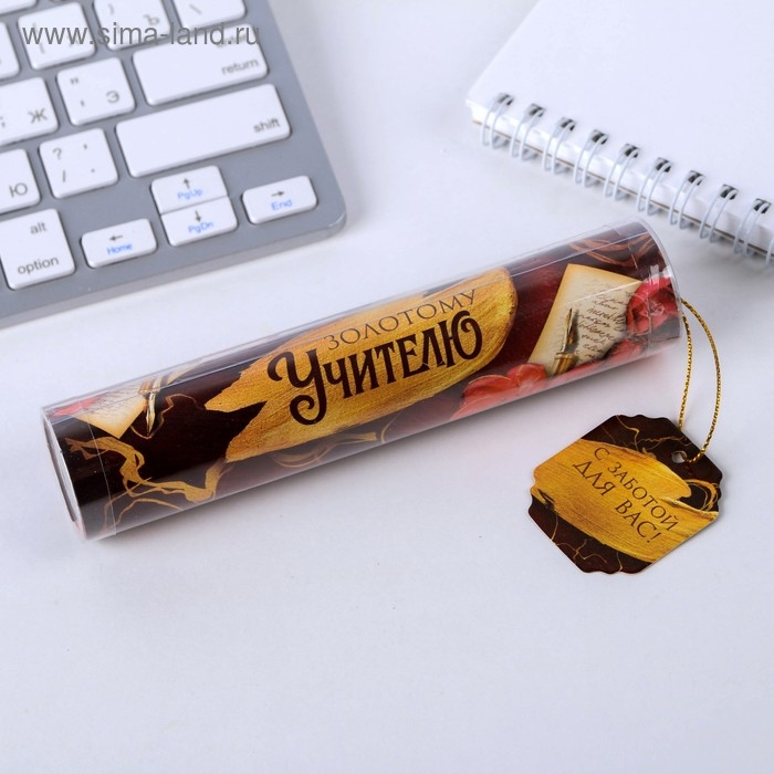 Ручка в тубусе «Золотому учителю», пластик, синяя паста, пишущий узел 1 мм