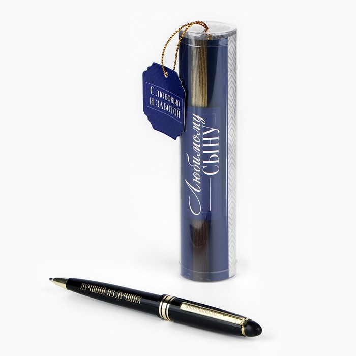 Ручка шариковая синяя паста в тубусе «Любимому сыну», пластик