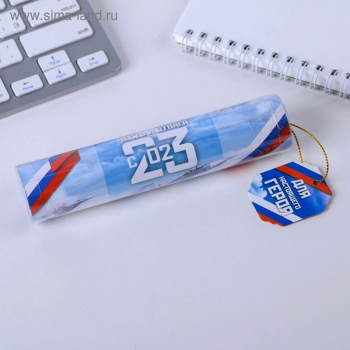Ручка шариковая синяя паста в тубусе «Для настоящего героя», пластик