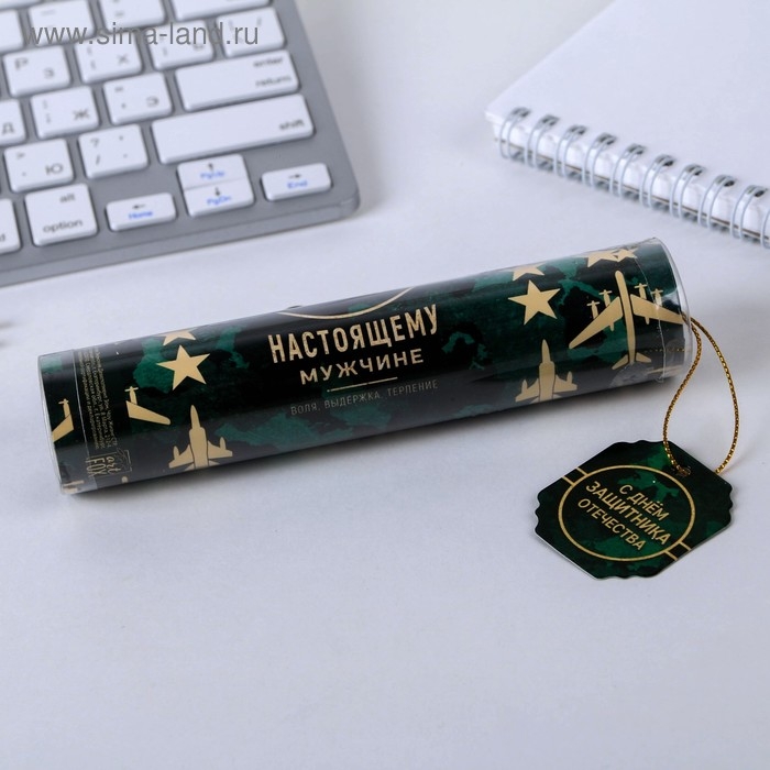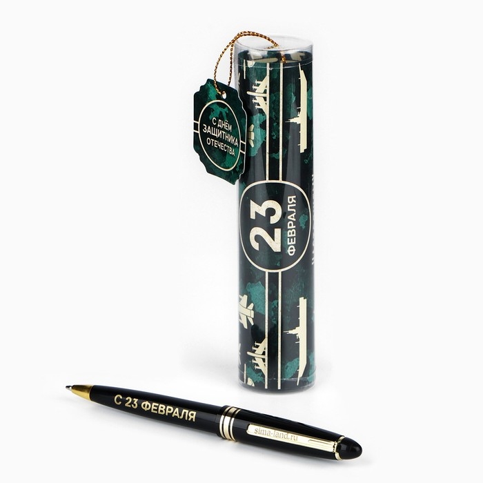 Ручка шариковая синяя паста в тубусе "С Днём Защитника Отечества", пластик
