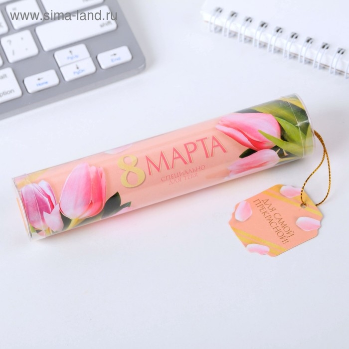 Ручка шариковая синяя паста в тубусе "Для самой прекрасной!", пластик