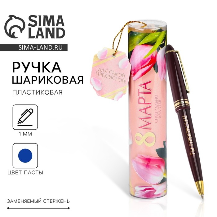 Ручка шариковая синяя паста «Цветок»,пластик, на подложке 8 марта