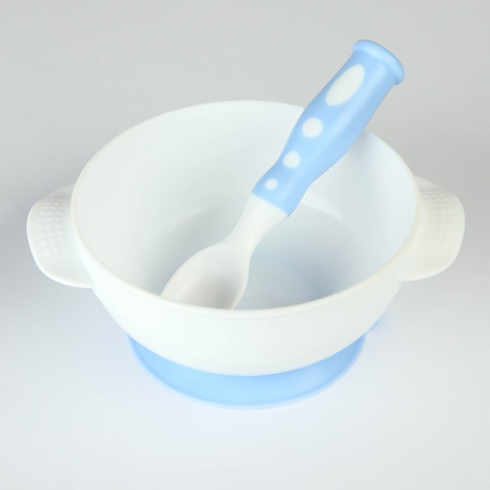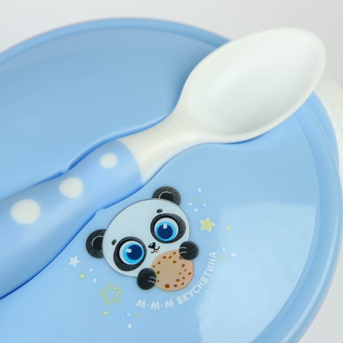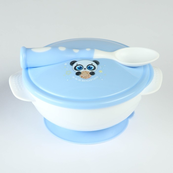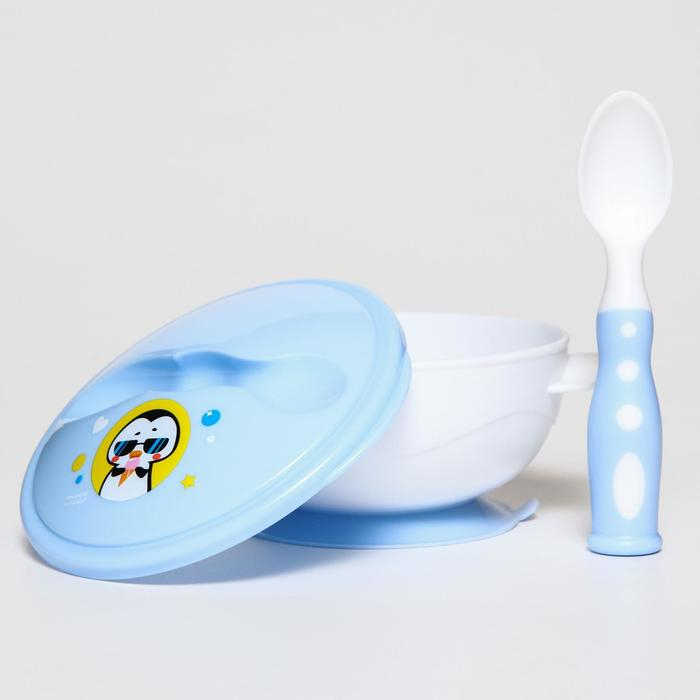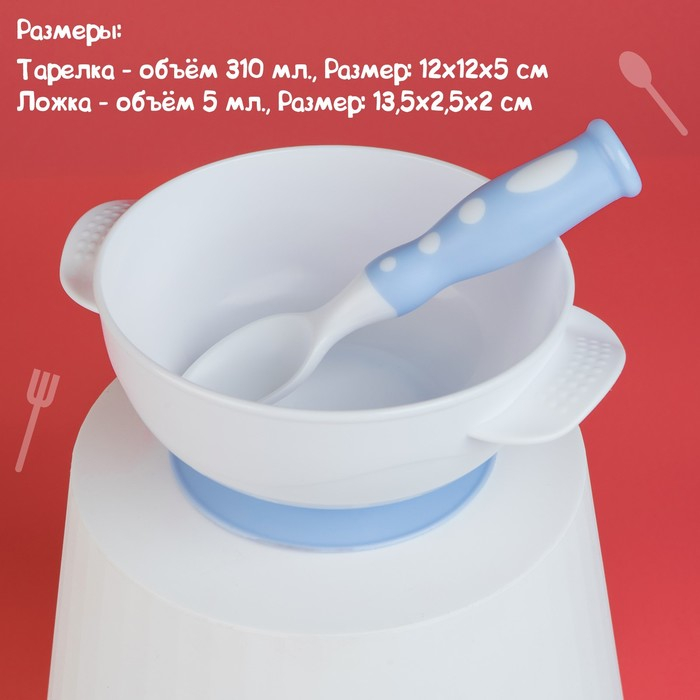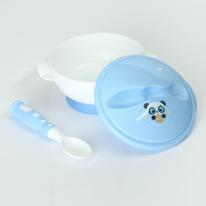 Набор детской посуды «Сладкий малыш», 3 предмета: тарелка на присоске, крышка, ложка, цвет голубой