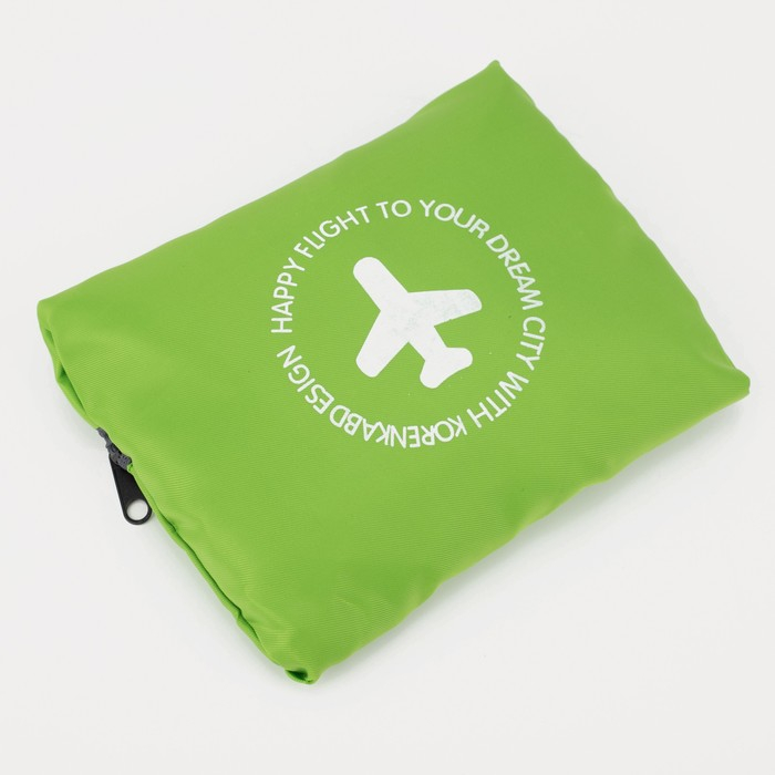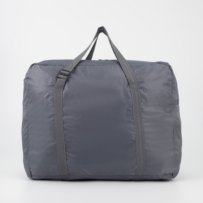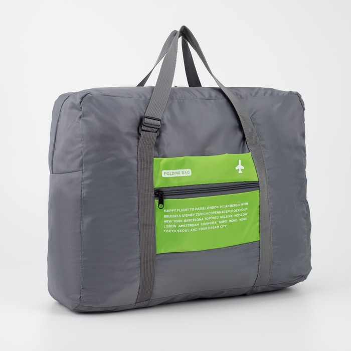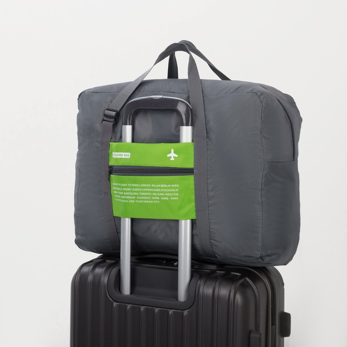 Сумка дорожная на молнии, складная в косметичку, наружный карман, держатель для чемодана, цвет серый/зелёный