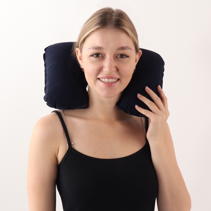 Подушка для шеи дорожная, надувная, 42 × 26,5 см, цвет синий