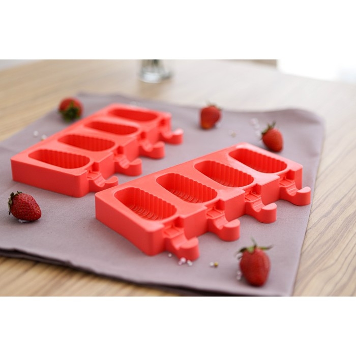 - Силиконовая форма для мороженого изготовлена из пищевого материала, имеет гибкие, мягкие стенки, благодаря чему десерты извлекаются очень легко.