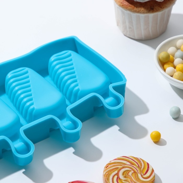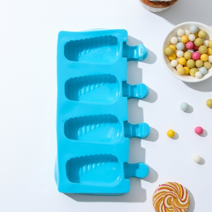 Форма для мороженого Доляна «Моника», силикон, 19,5×11 см, 4 ячейки (6,7×3,2 см), цвет МИКС
